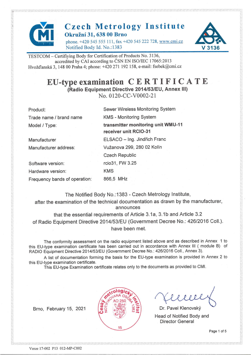 Zaměstnanci firmy ELSACO ve spolupráci s obcí Veltruby vytvořili vlastní systém pro monitorování podtlakových kanalizačních systémů (KMS)