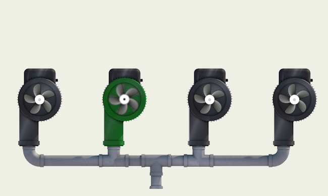 Vývěvy jsou základem podtlakové kanalizace. Součástí KMS je i vizualizace jejich průběžného stavu, aby obsluha měla aktuální informace a případně mohla reagovat na signalizovaný chybový stav. Není to jen informace o běhu vývěv, ale také o aktuálním a průměrném příkonu, délce běhu vývěv a motohodinách. KMS na základě těchto a dalších informací dokáže detekovat problematické stavy i v případě, že se porucha neprojeví ztrátou tlaku v koncových bodech.