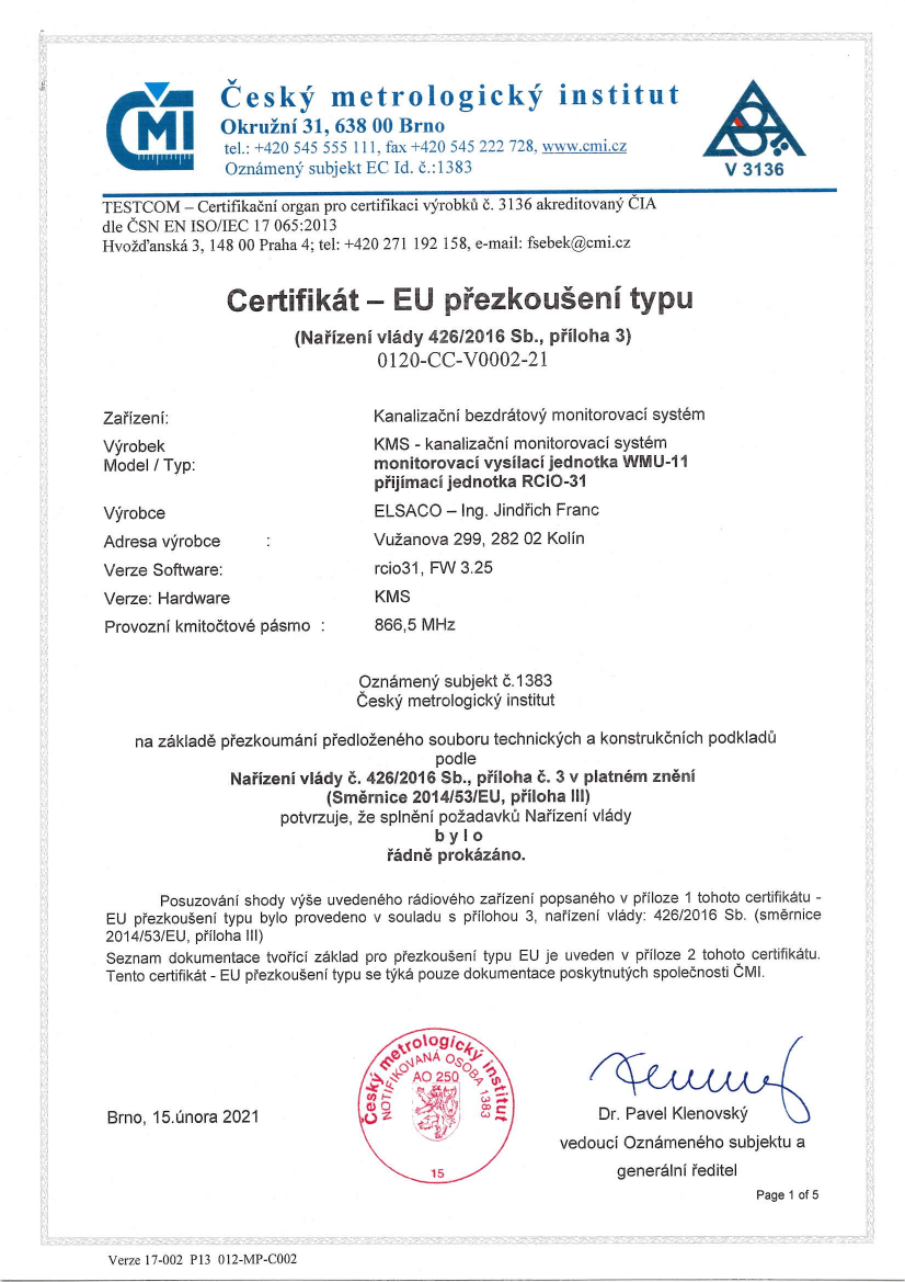 Zaměstnanci firmy ELSACO ve spolupráci s obcí Veltruby vytvořili vlastní systém pro monitorování podtlakových kanalizačních systémů (KMS)
